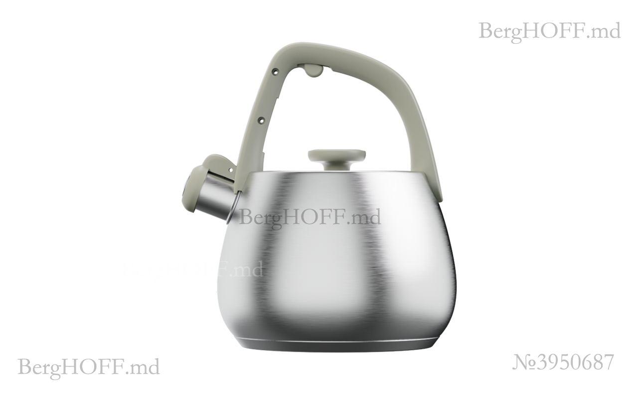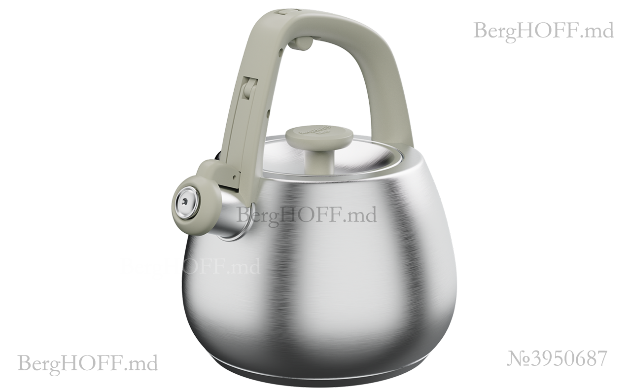 Ceainic cu fluier Berghoff, 2 l — soluție practică și elegantă pentru bucătăria dumneavoastră. Designul modern în culoare gri se integrează armonios în orice interior, iar construcția atent realizată oferă confort în utilizarea zilnică.